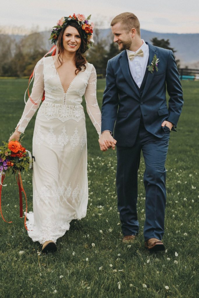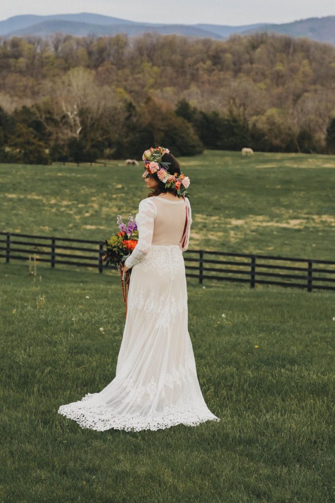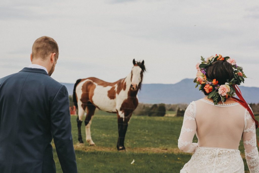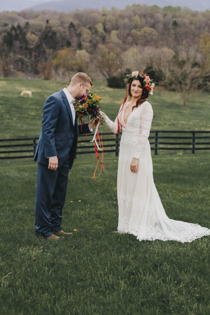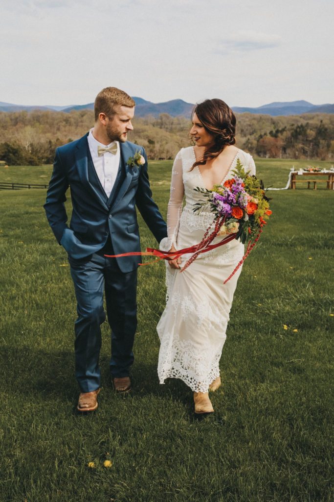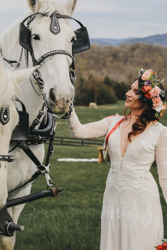 Let’s talk about how incredible this venue is. River’s Bend Ranch is set upon 360 degree views of the blue ridge mountains in Stanley, Virginia. It’s close to the most precious small town, and tons of hiking. They have a bunk house for rent with 10 bedrooms and stunning views, and 2 of the most precious little cabins. Longhorn hows and tons of horses add to the landscape.
