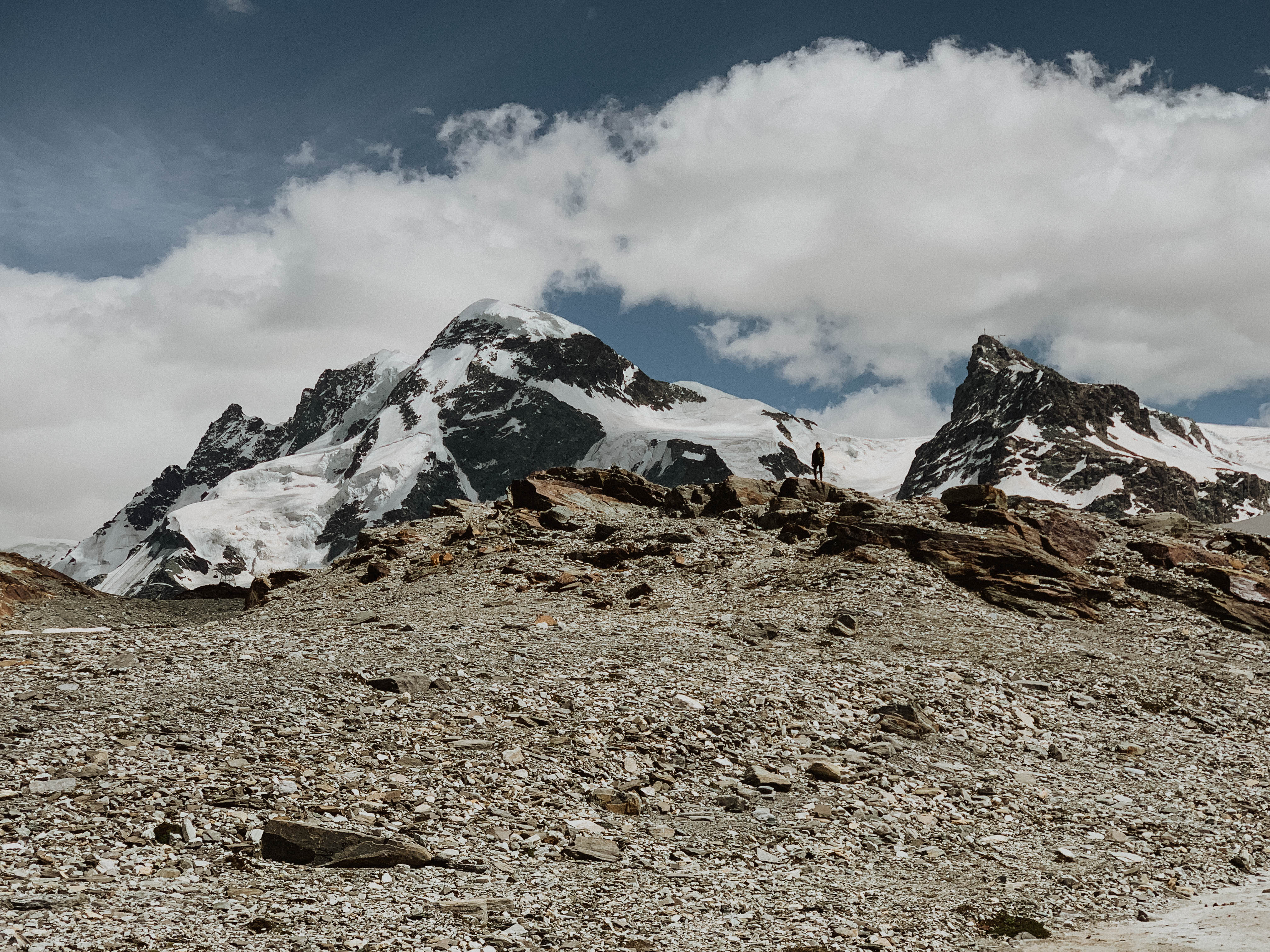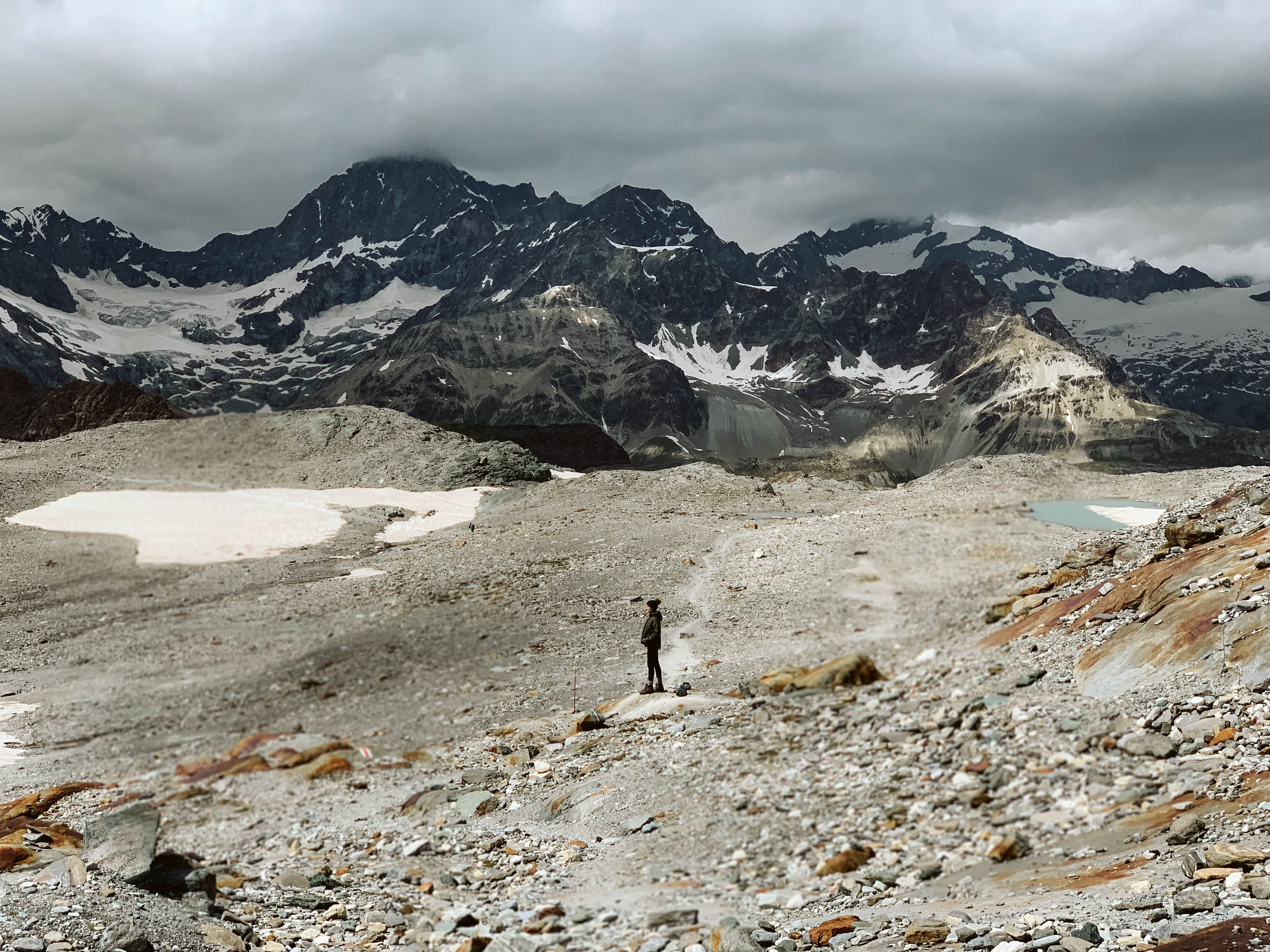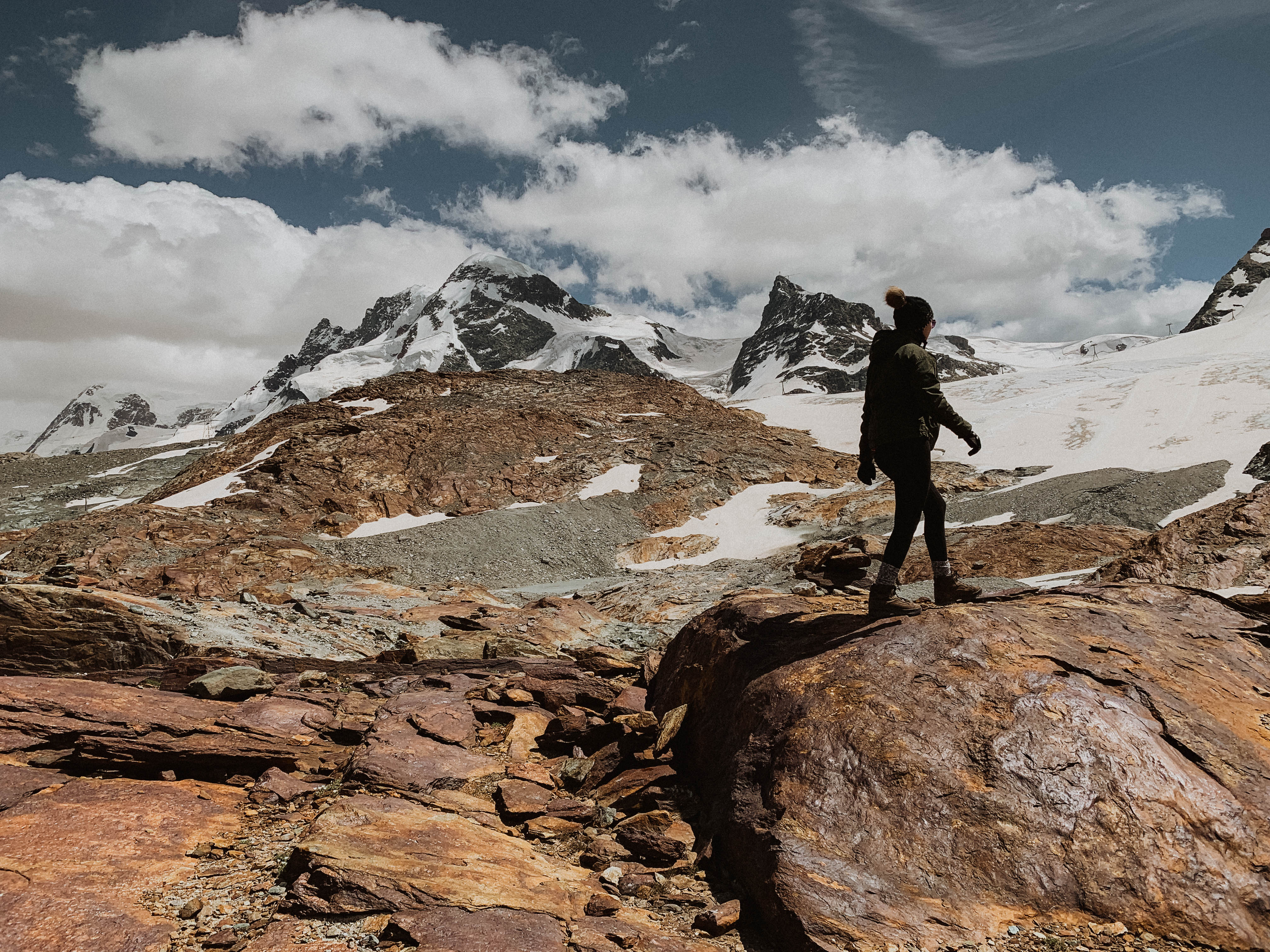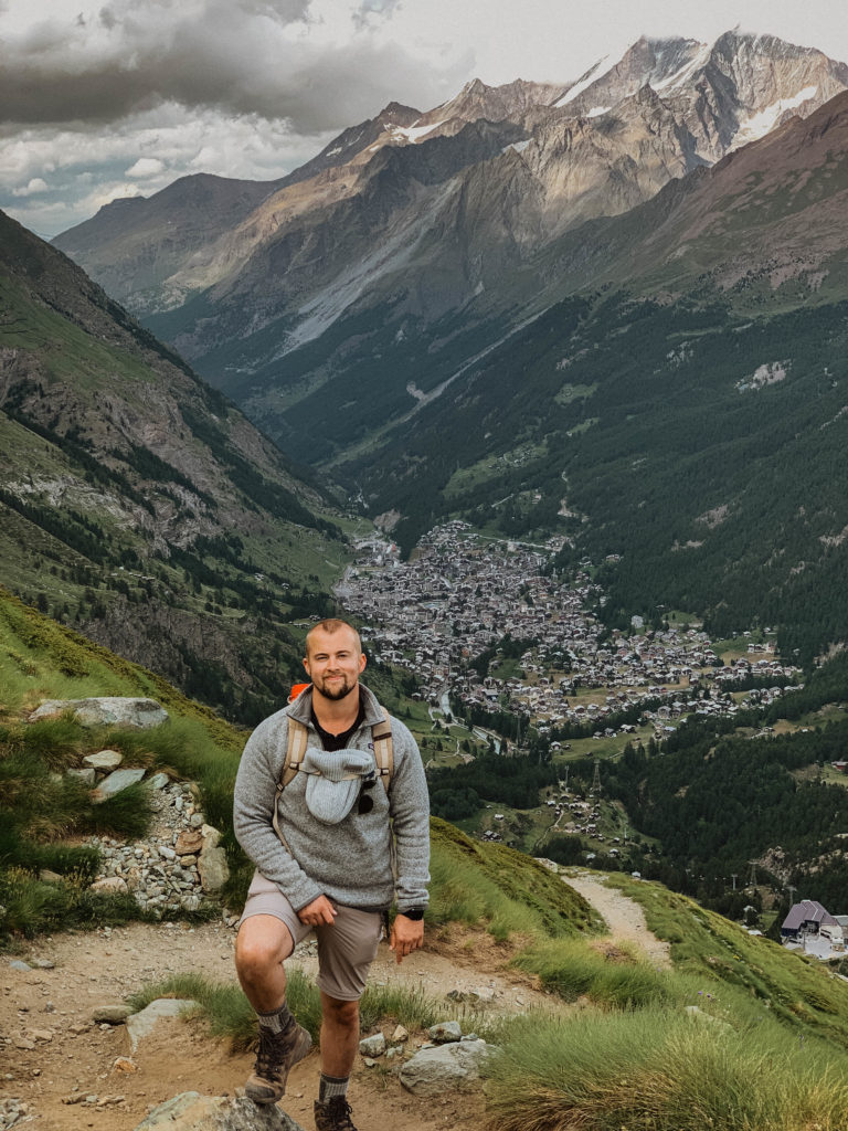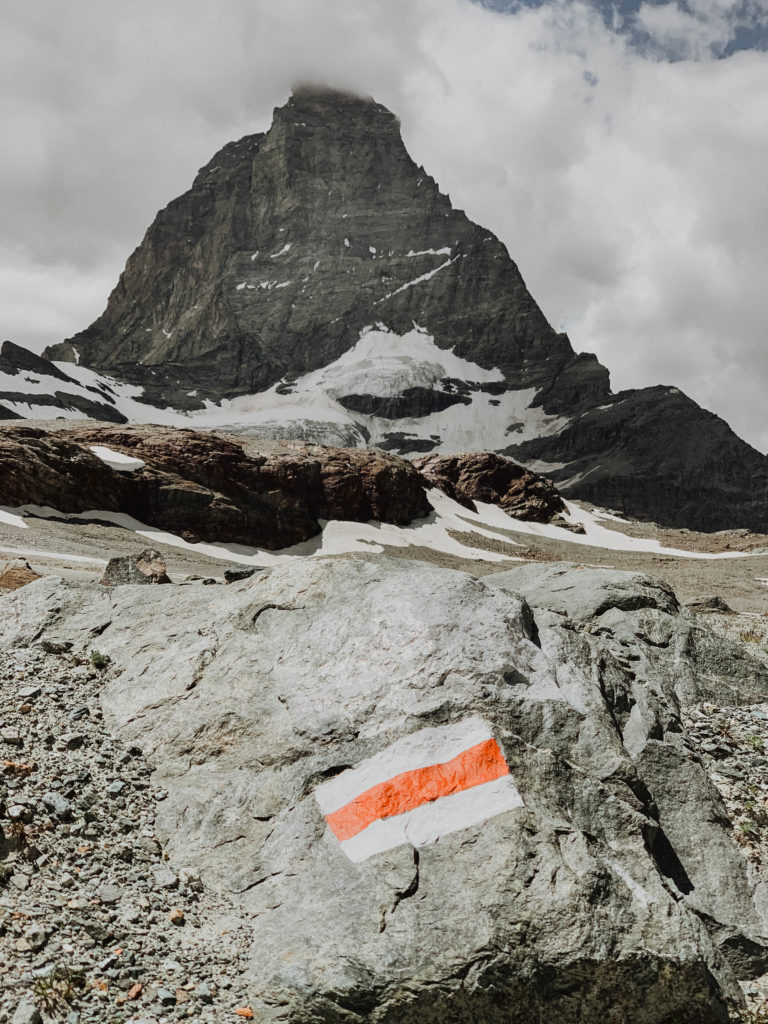 Our first day in Zermatt the Matterhorn was completely covered in clouds and you couldn’t see it. A local told us its very temperamental and there are only certain times of day where its totally visible. We went into complete panic mode, thinking, oh my gosh we came all the way here and what if we don’t see it the entire trip? Regardless we were there to hike, so we set out on our first journey to Matterhorn Glacier Trail.
